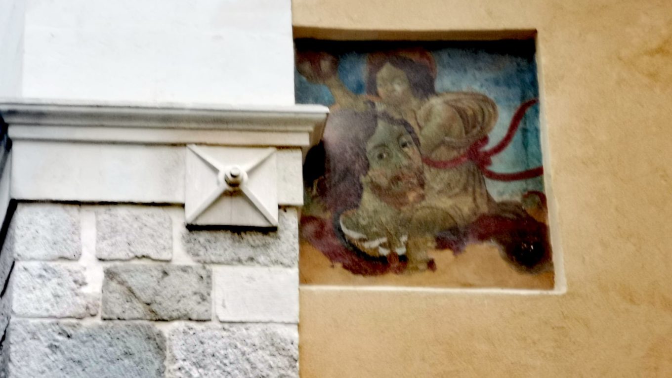 Prospetto laterale della Chiesa di San Silvestro su Via San Silvestro, affresco.
