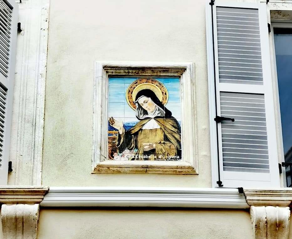 Piazza Santa Elisabetta, Santa Elisabetta d’Ungheria, Ceramica di San Berardino, Umberto Crisciotti.