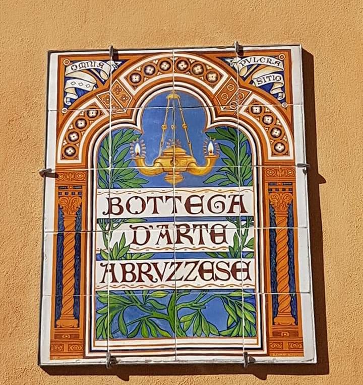 Corso Vittorio Emanuele, ex sede della “Bottega d’arte abruzzese”, formelle in ceramica realizzate dalla Maiolica Polci di Pescara su disegno di Domenico Cifani.