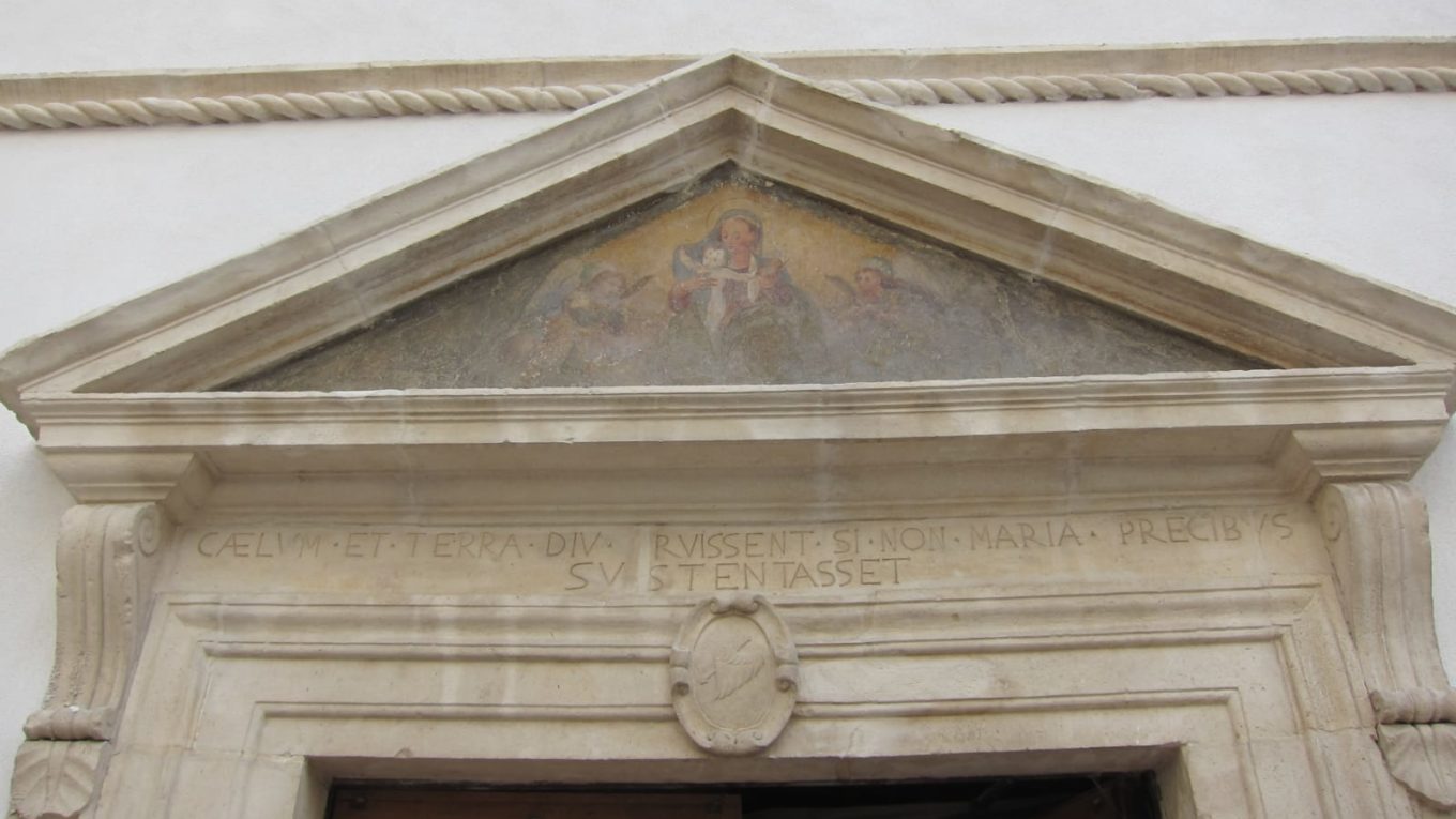 Ingresso chiesa Santa Maria degli Angeli in via Fortebraccio. Chiesa del convento delle suore di Palazzo Alfieri.