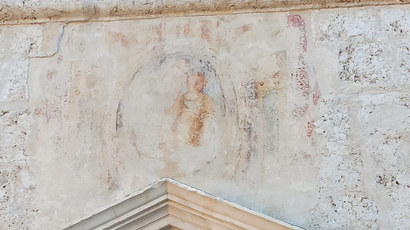Chiesa di Santa Giusta, lunetta sul portale principale, affresco.