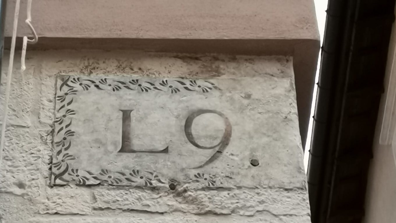Via Fortebraccio scendendo edificio dopo il portale dell’arte della lana. Essendoci un cantiere non ho capito se è una ceramica o un dipinto…